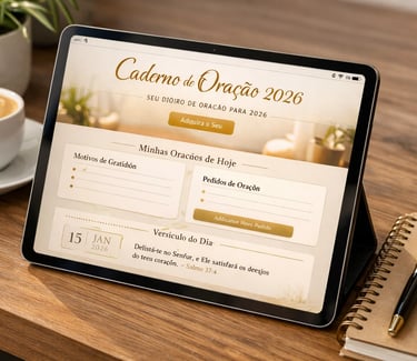 O CADERNO DIGITAL prático e interativo para você orar com foco, meditar na Palavra e registrar o agir de Deus sem precisar de papel ou configurações complicadas.